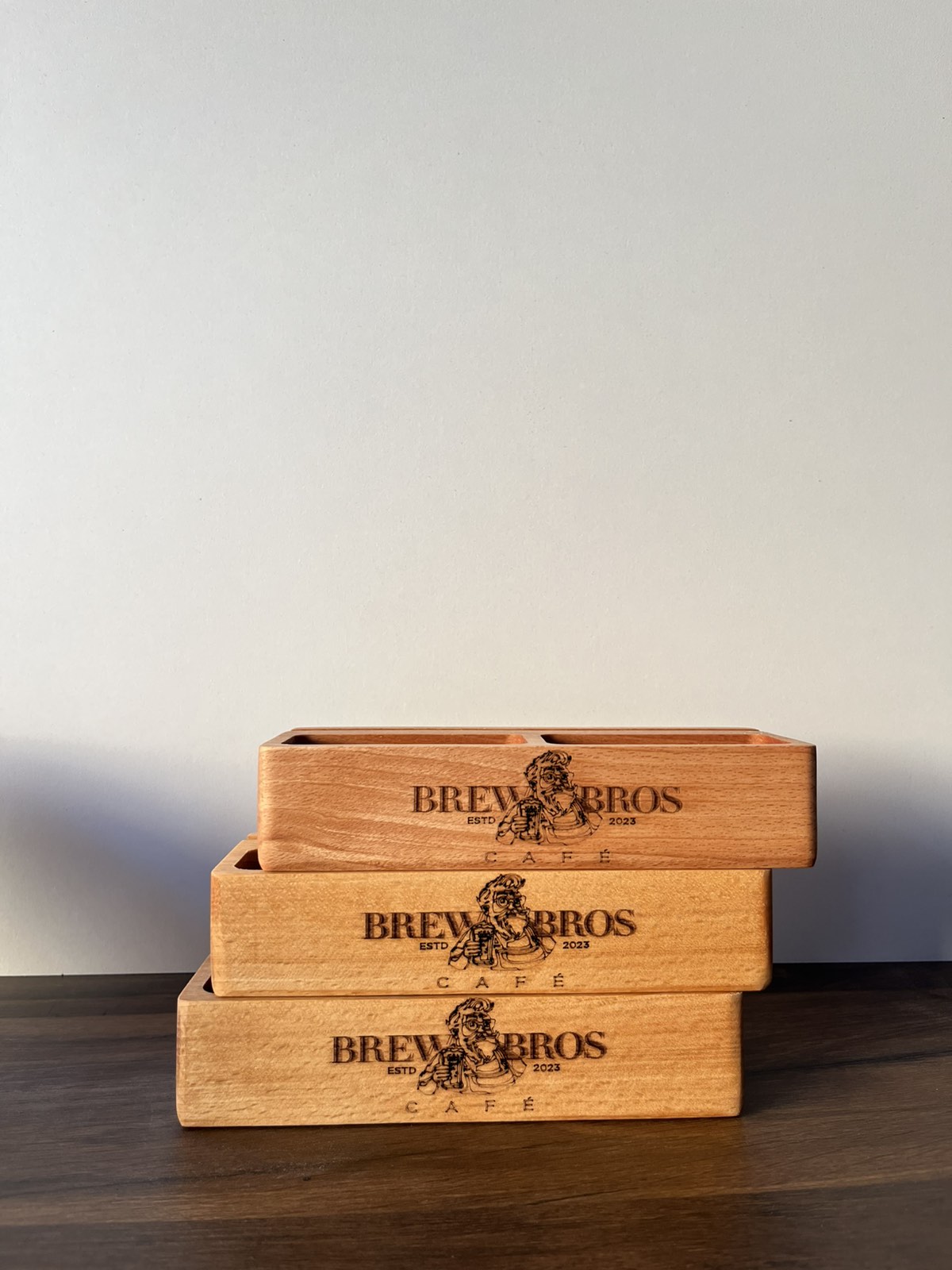 Drveni stalak za šećer i meni – funkcionalan i elegantan dodatak svakom stolu, sa mogućnošću gravure po želji.